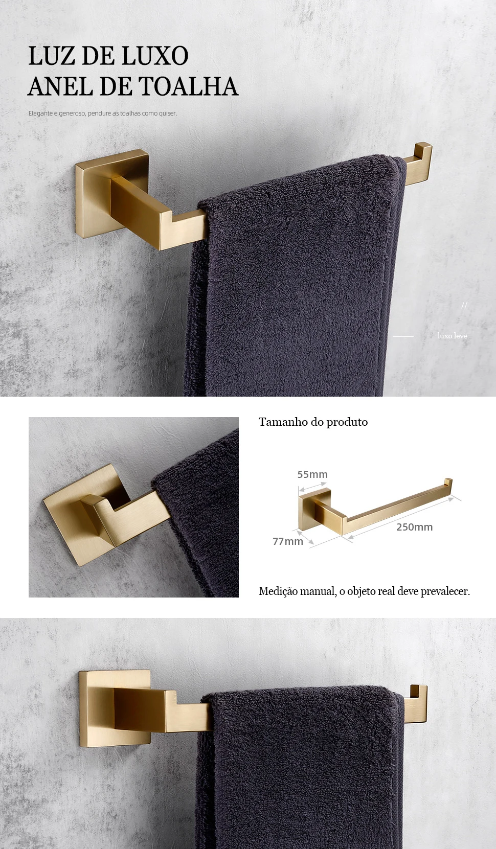 Construído com materiais de alta qualidade, o toalheiro dourado fosco é resistente e durável, garantindo que você desfrute de sua elegância e funcionalidade por muito tempo. O acabamento em dourado fosco confere uma aparência premium, adicionando um toque de requinte ao seu banheiro.